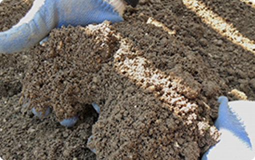 土壌に問題がある場合は、芝生を張り替えても枯れ てしまうことが多いことがあります。芝生がいきいきと成長するように、当社では、芝生に適していない土壌の場合は、土づくりから始めます。