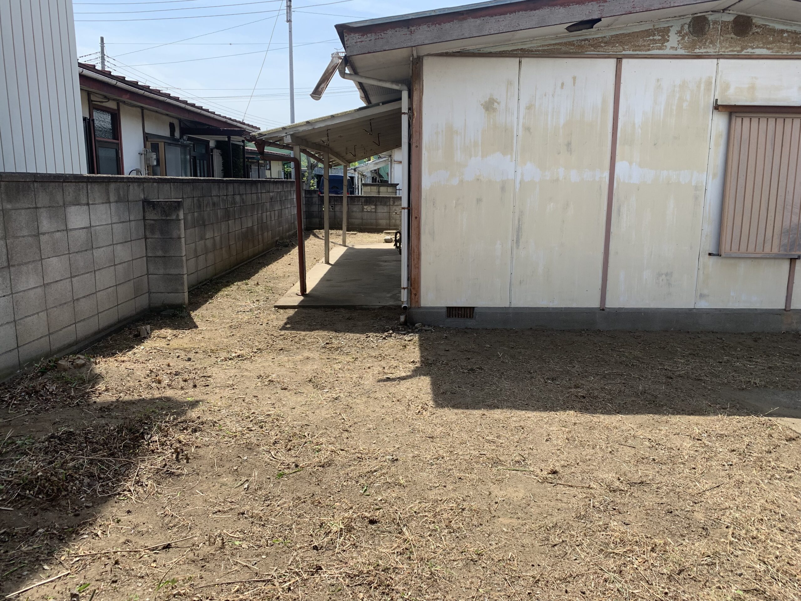 お庭に生い茂った雑草を刈り、整地、敷砂利いたしました。
