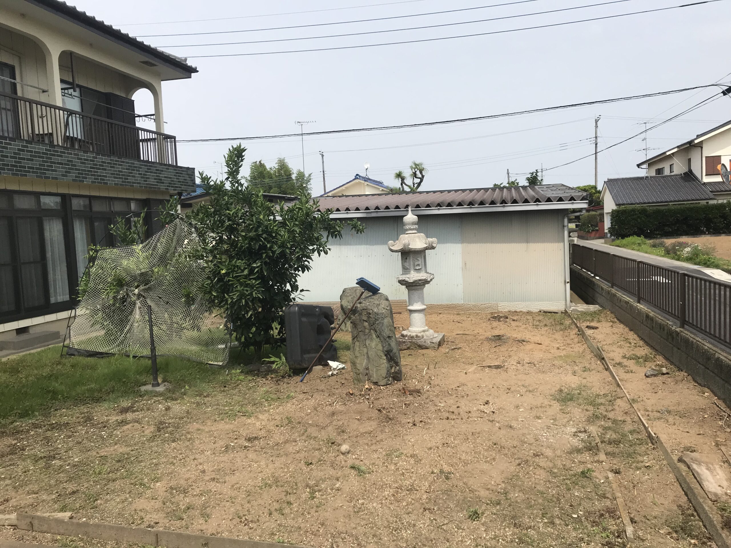 お庭に生い茂った雑草を刈り、整地、敷砂利いたしました。