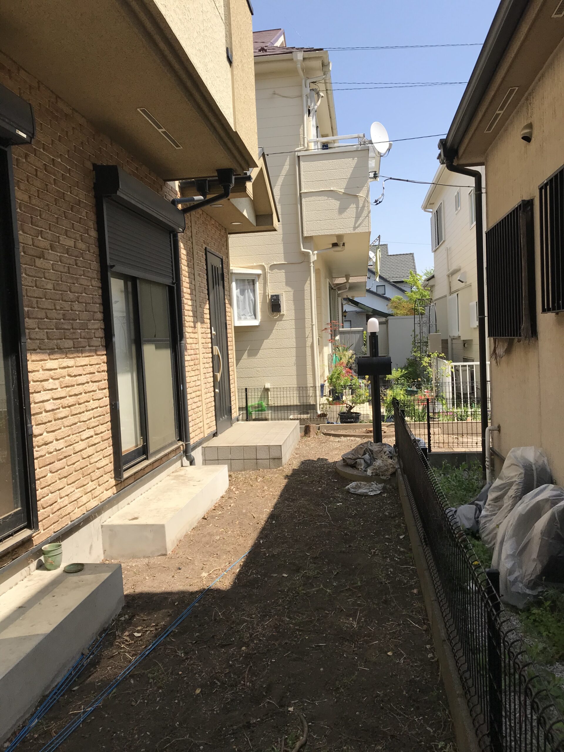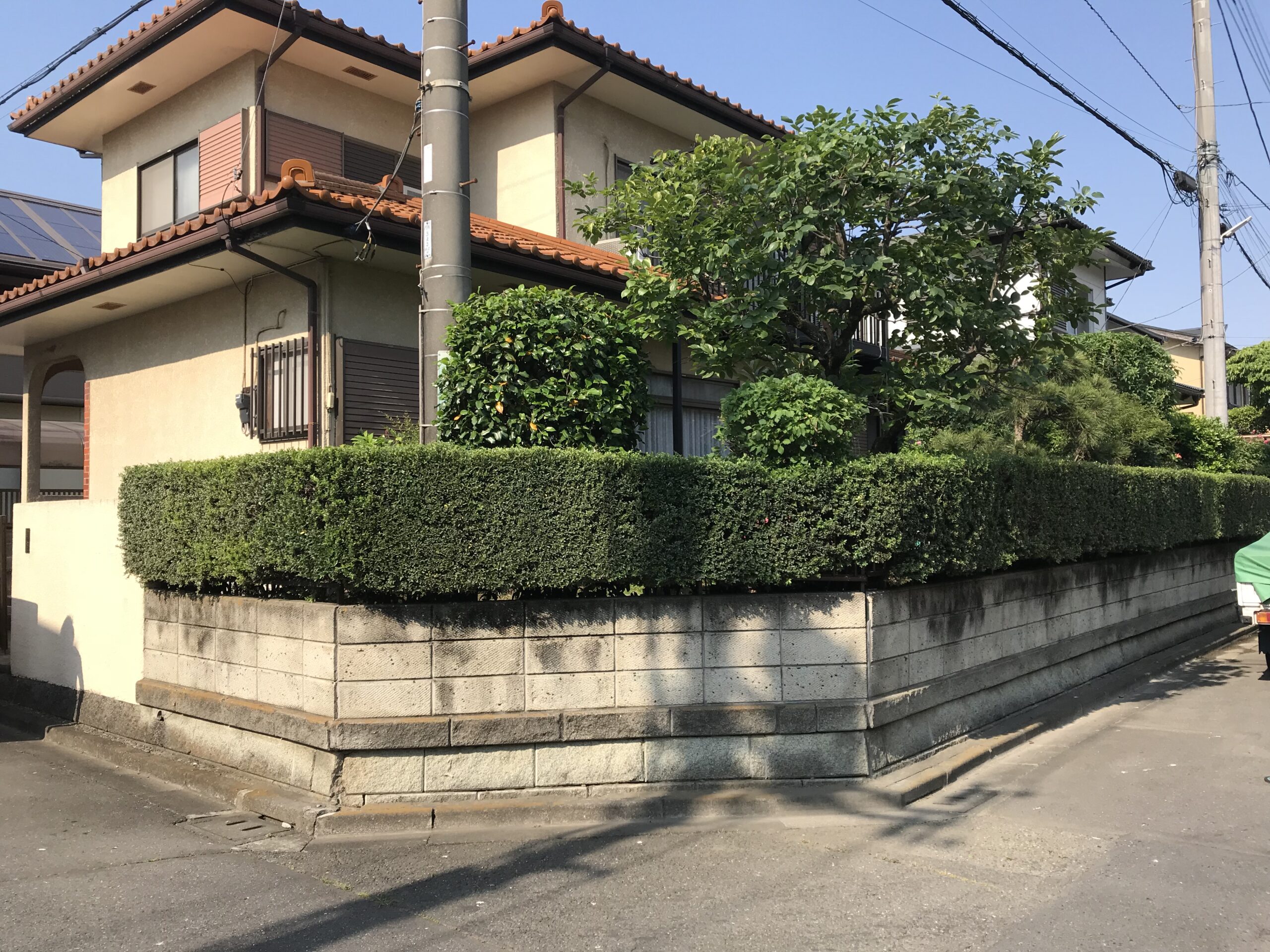 お庭の壁の際に植えていた植木を伐根いたしました。