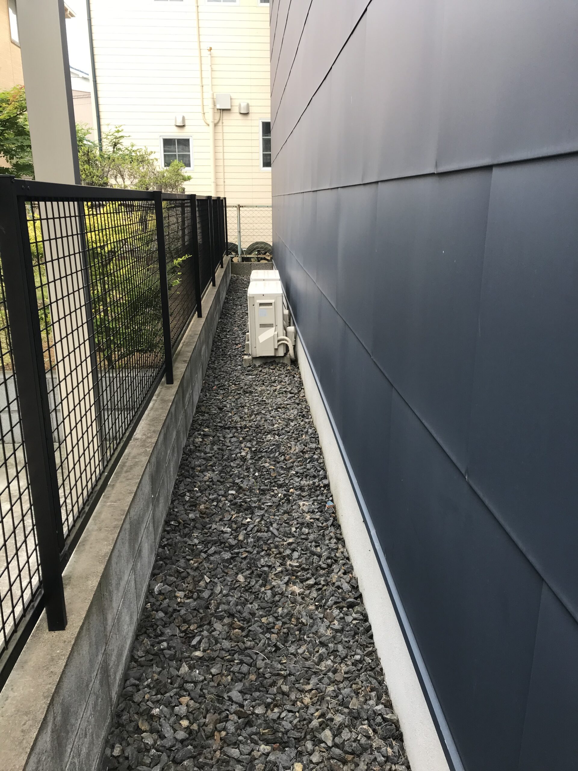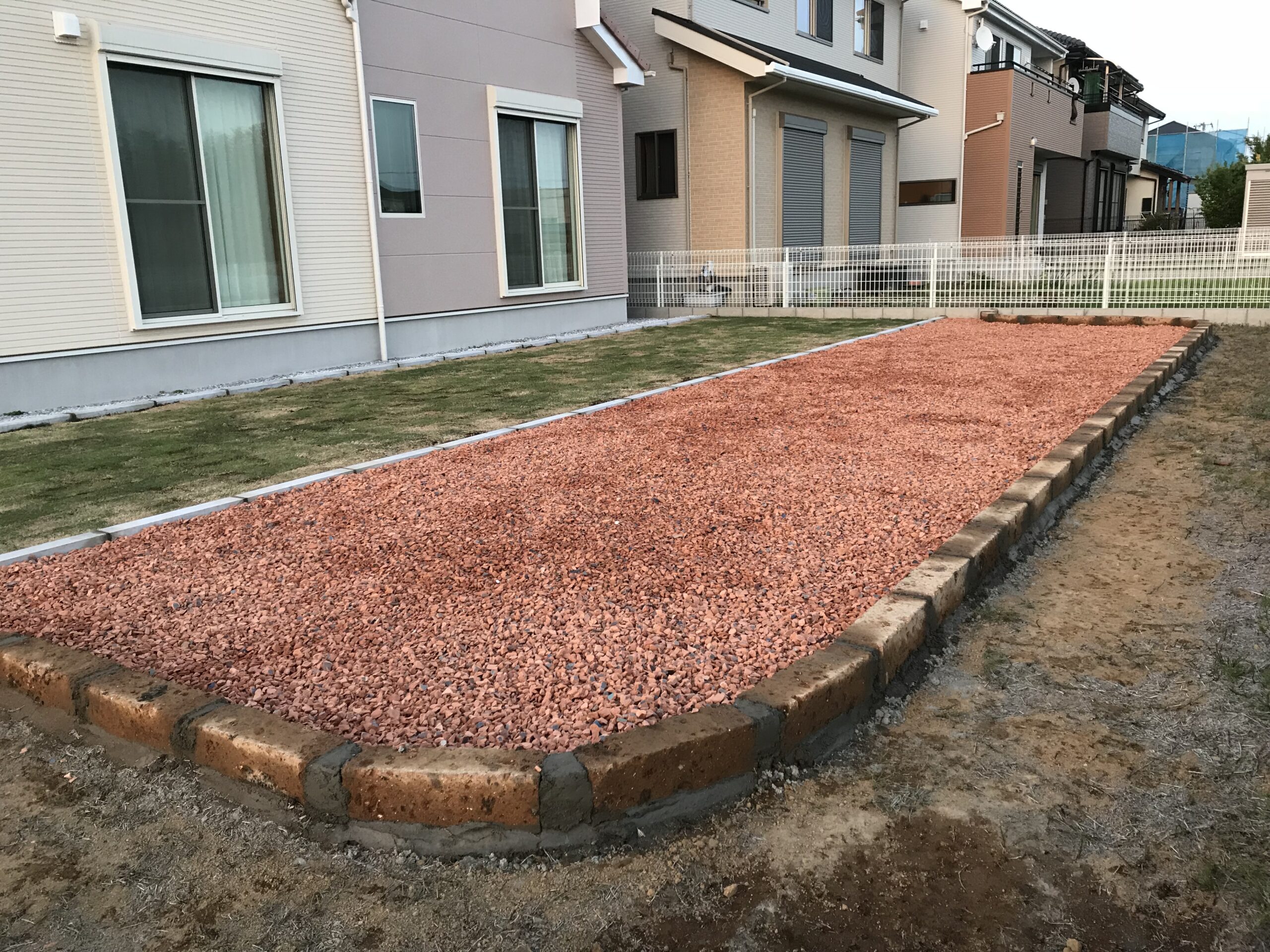 お庭に生い茂った雑草を刈り、整地、敷砂利いたしました。