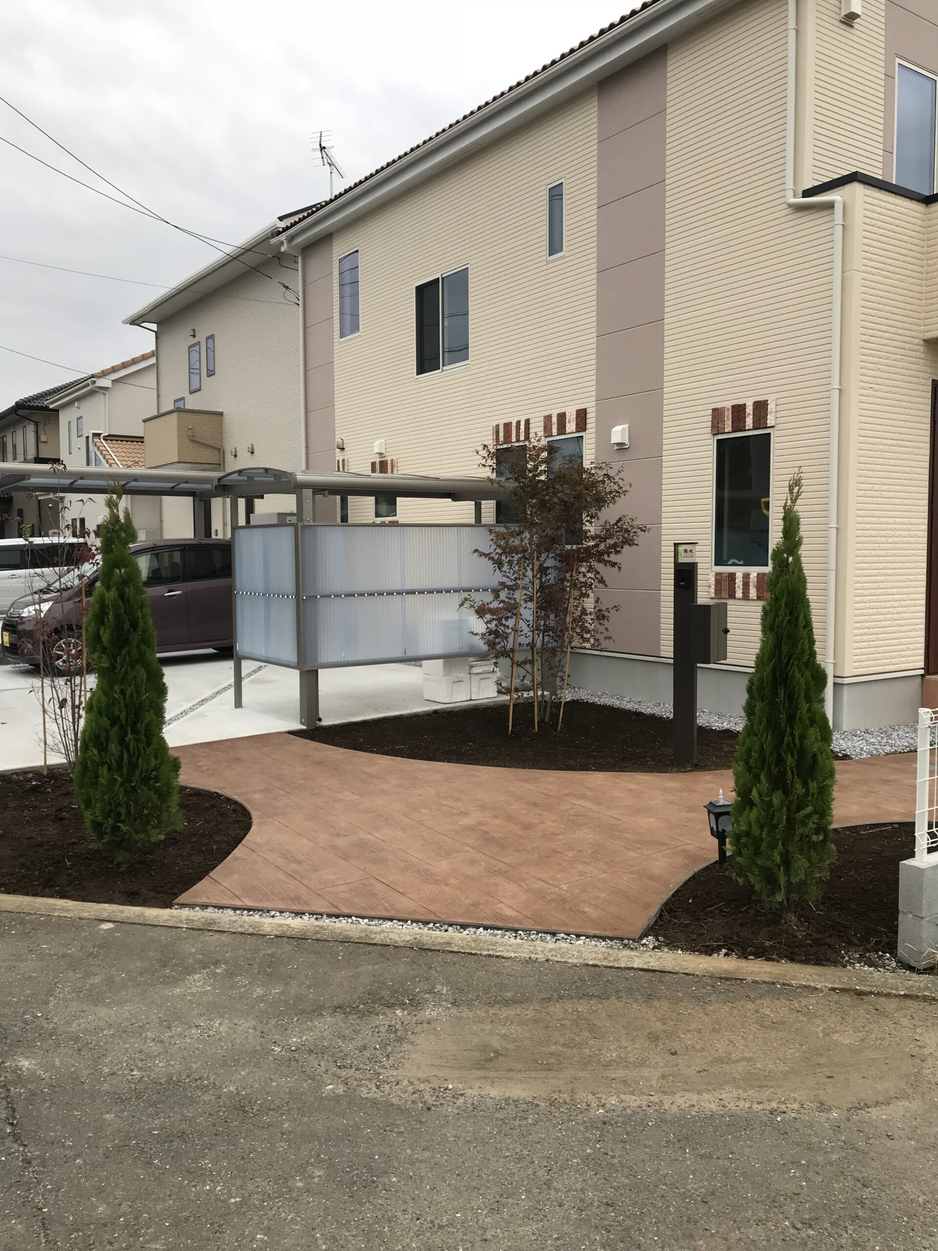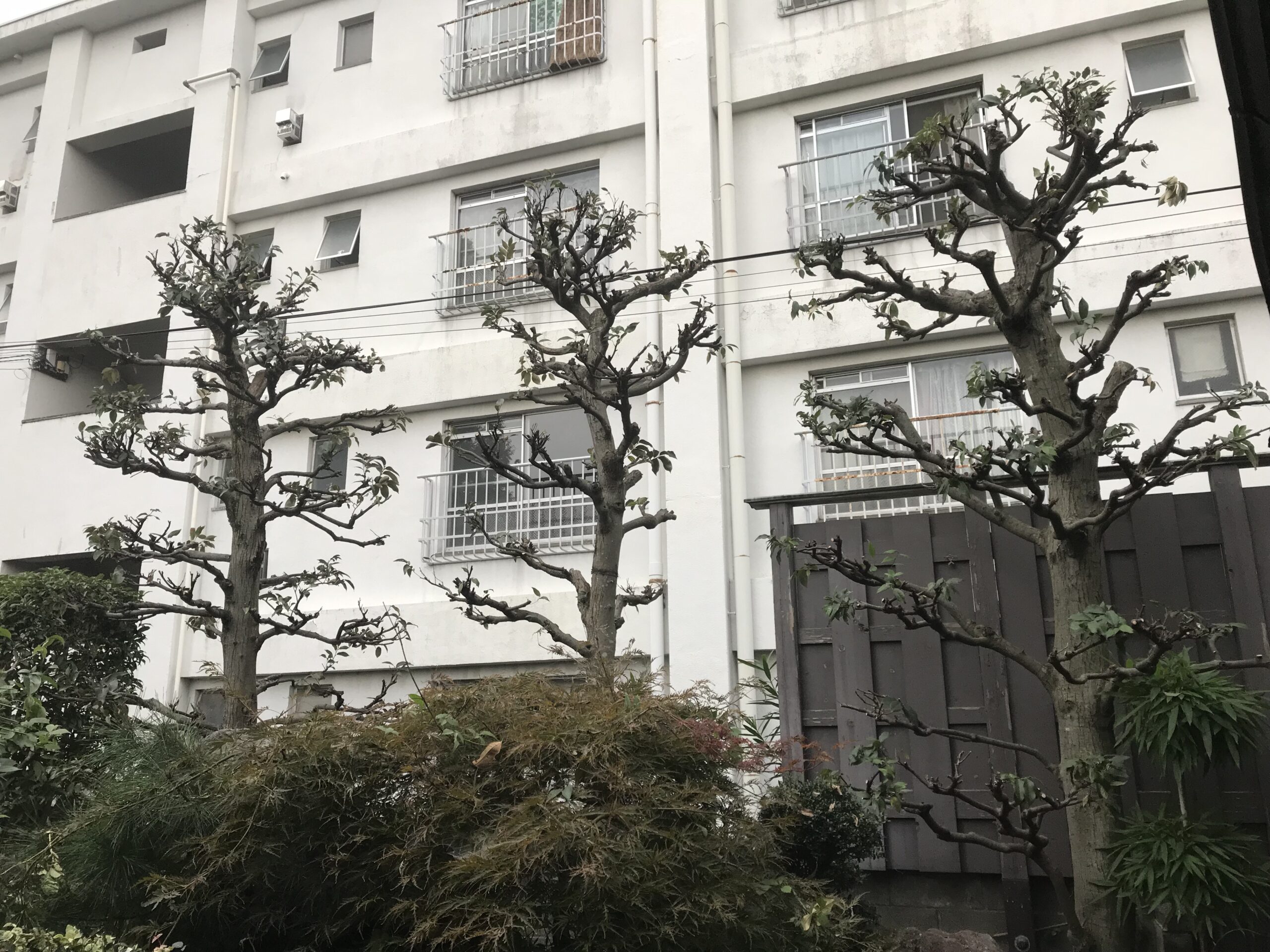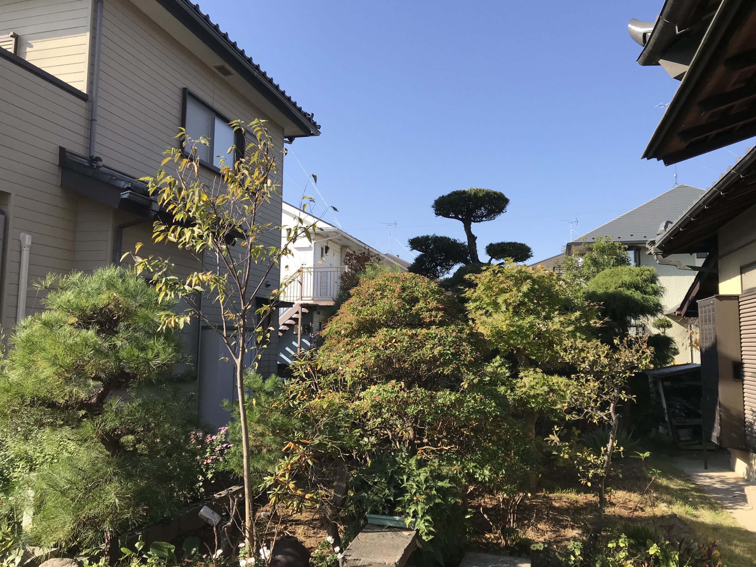 お庭の壁の際に植えていた植木を伐根いたしました。
