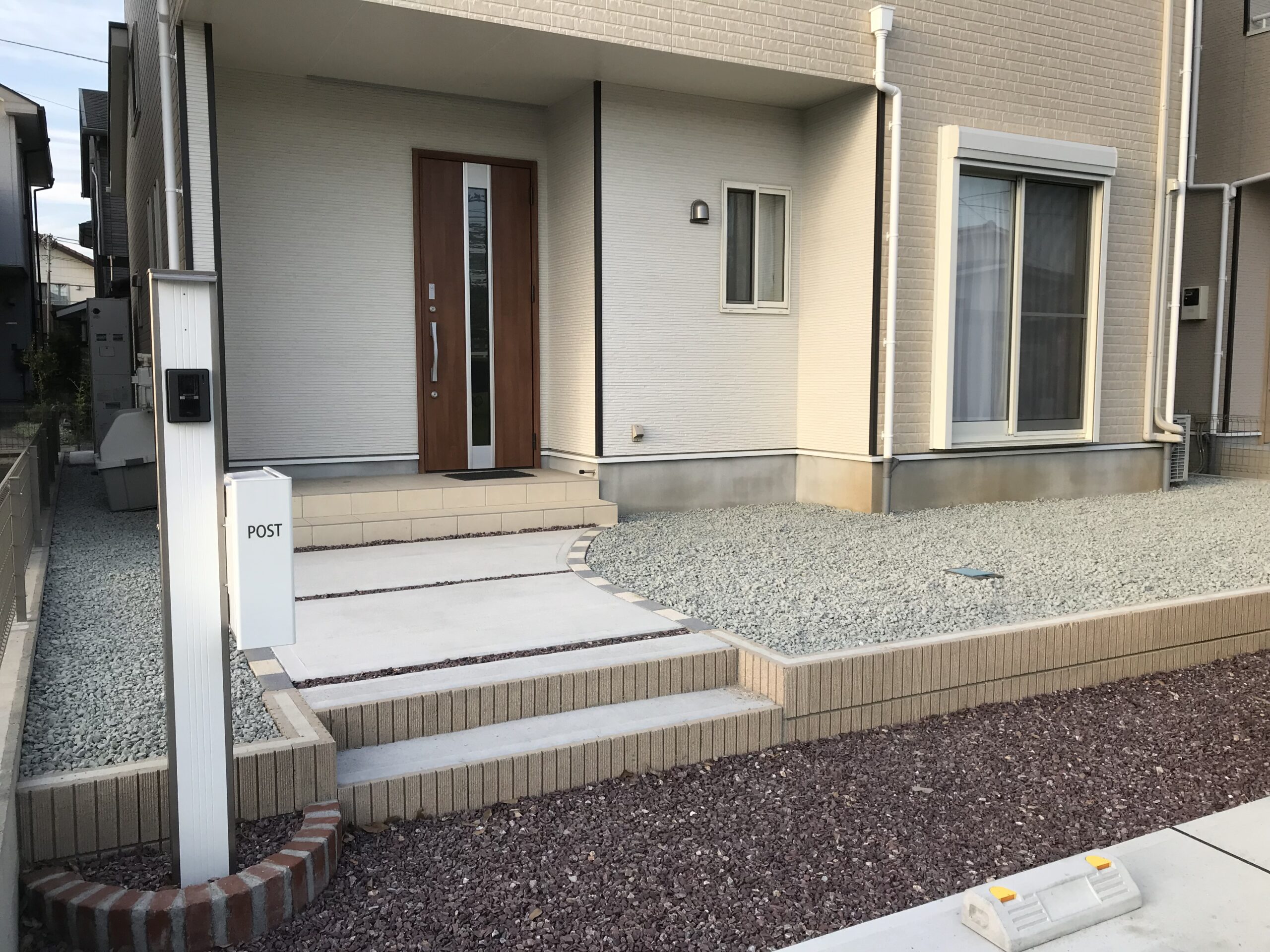 花壇と砂利敷きの施工を行いました。