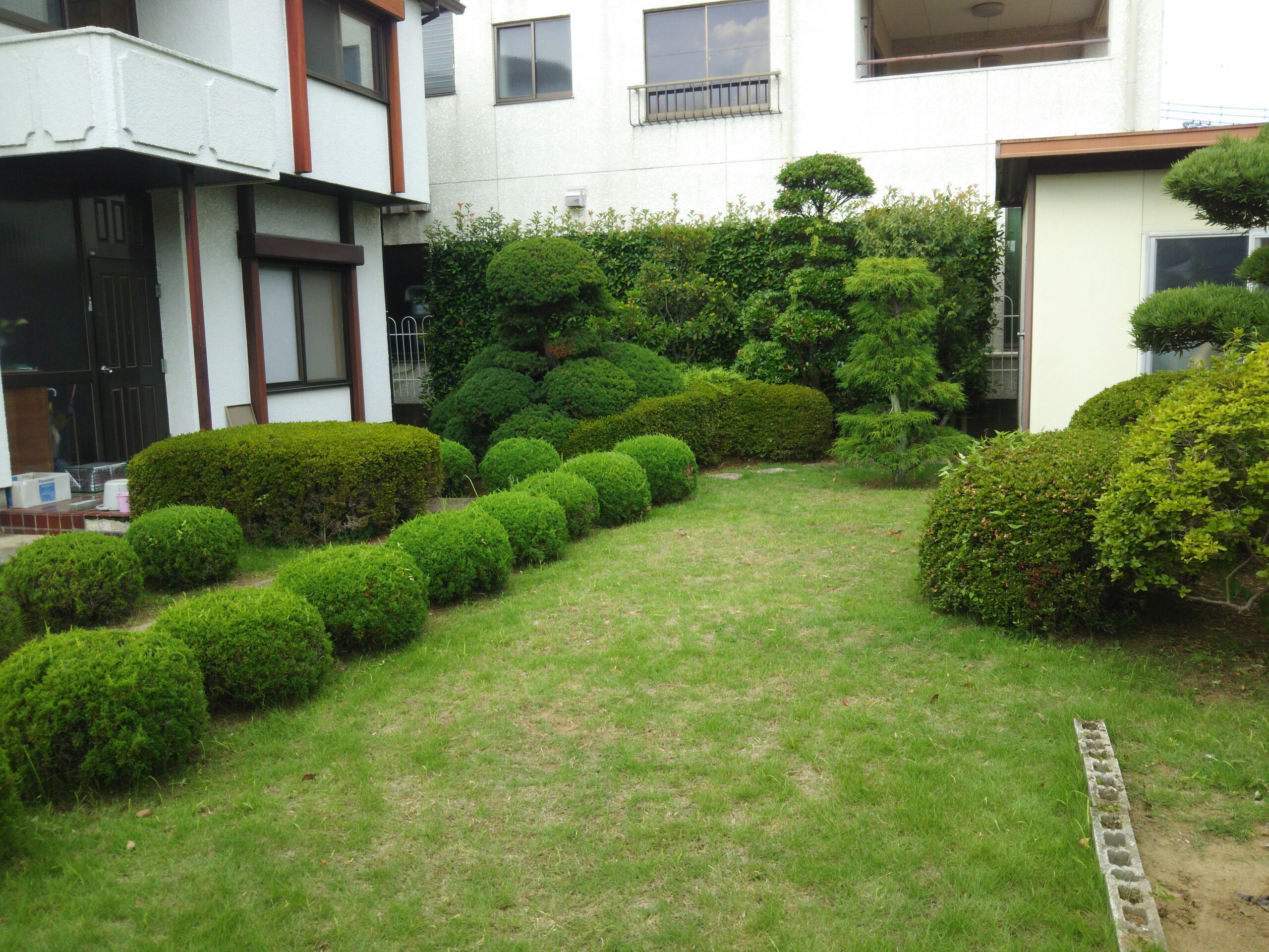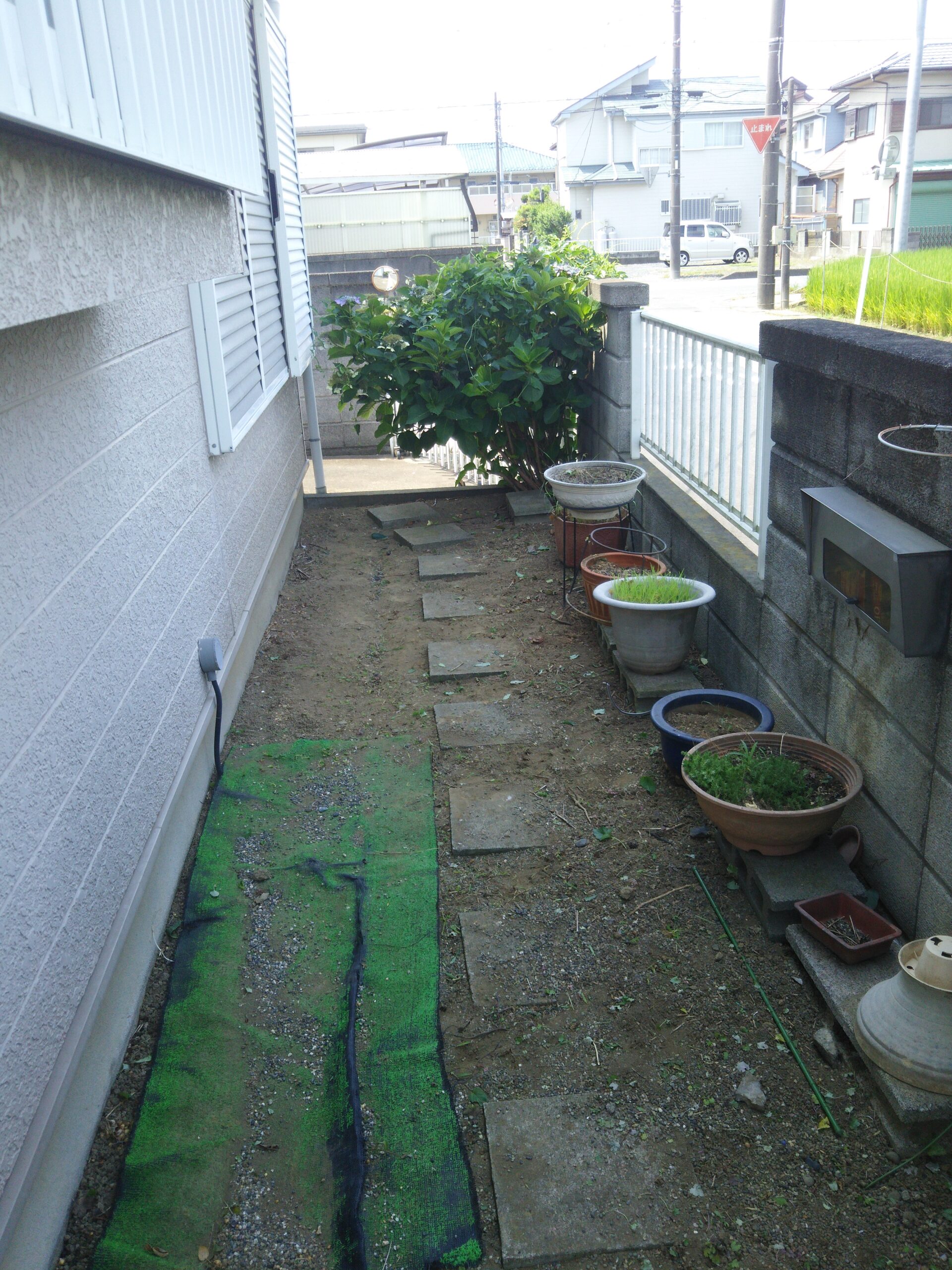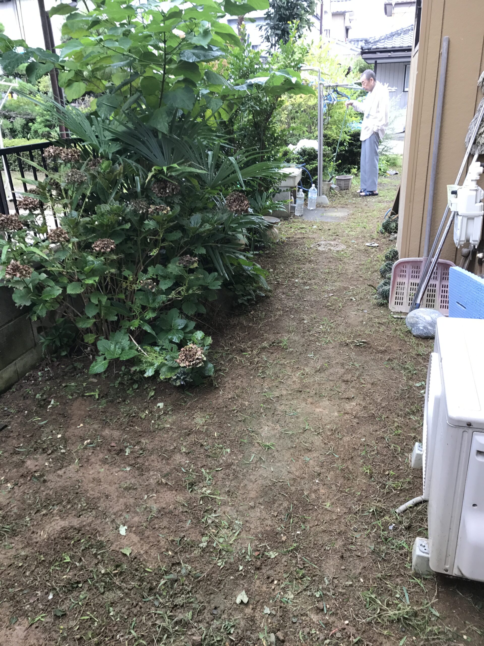 お庭に生い茂った雑草を刈り、整地、敷砂利いたしました。