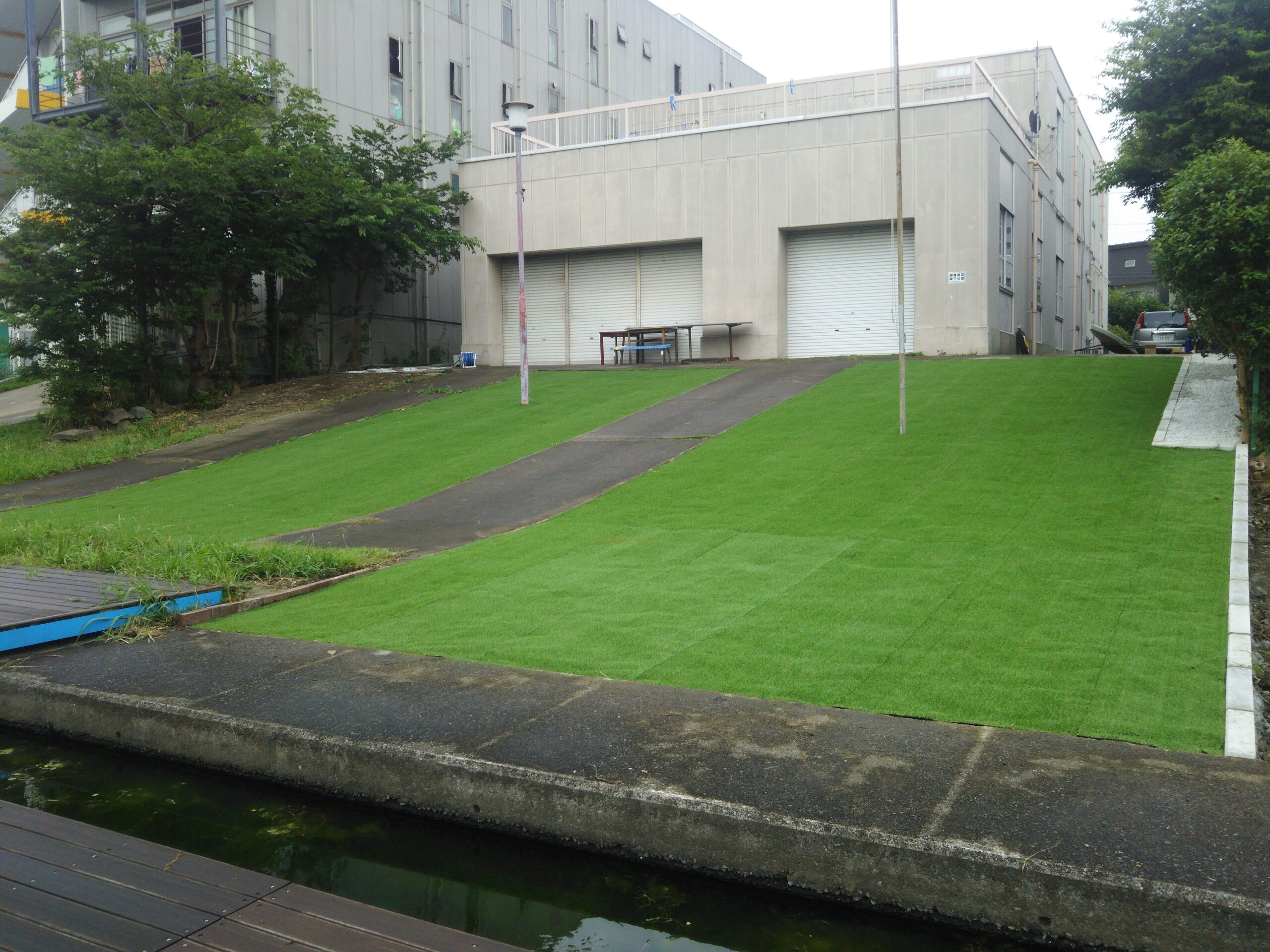 花壇と砂利を撤去した場所に芝生を敷きました。