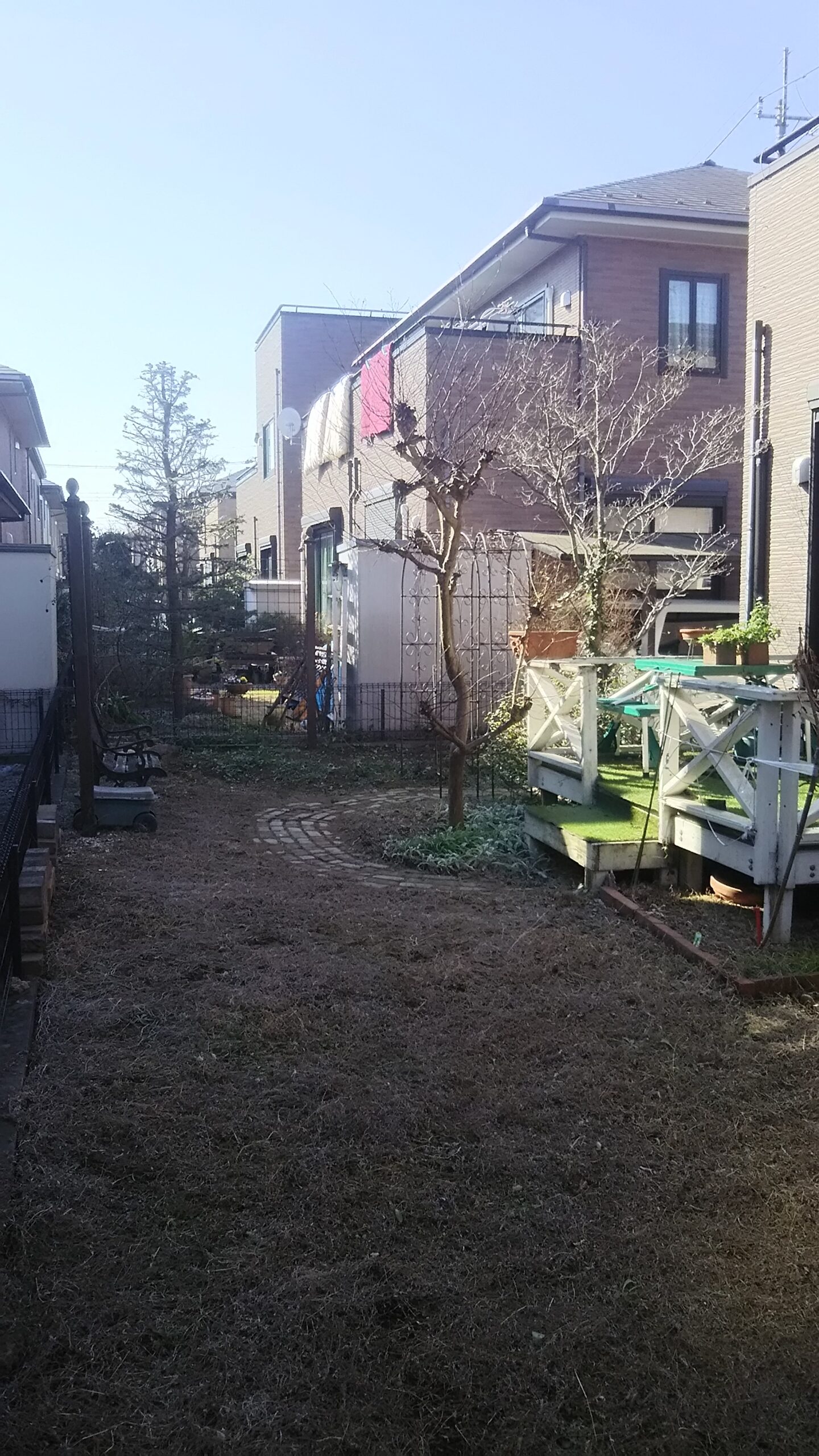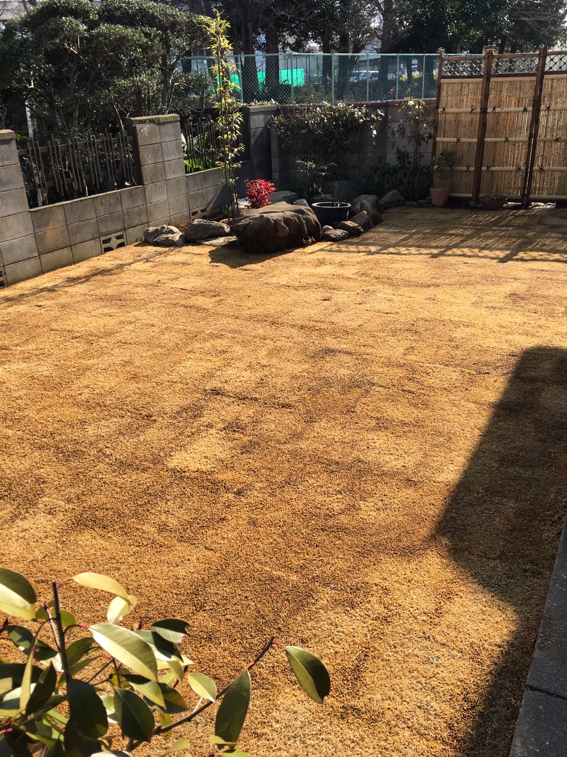 お庭に生い茂った雑草を刈り、整地、敷砂利いたしました。