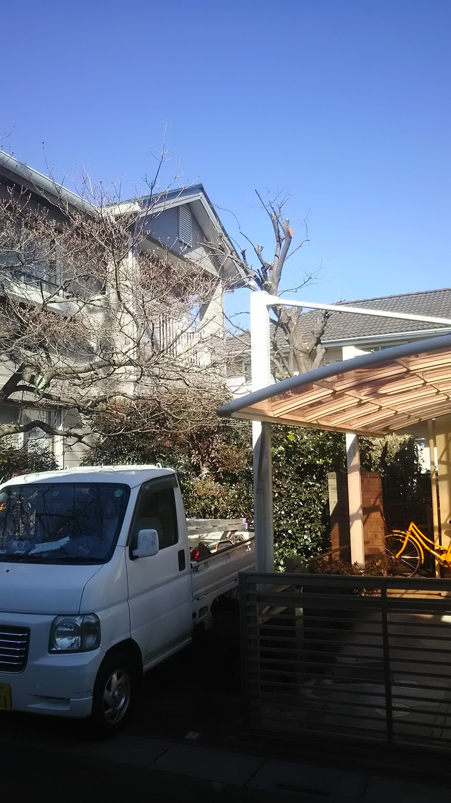 高さ9m程のエゴノ木を枝落とししました。隣のお宅にかぶってる枝と高くなってしまった枝を落としました。