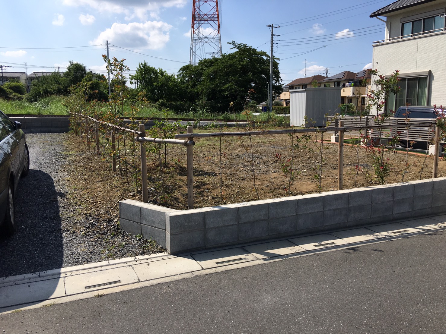 お庭の壁の際に植えていた植木を伐根いたしました。