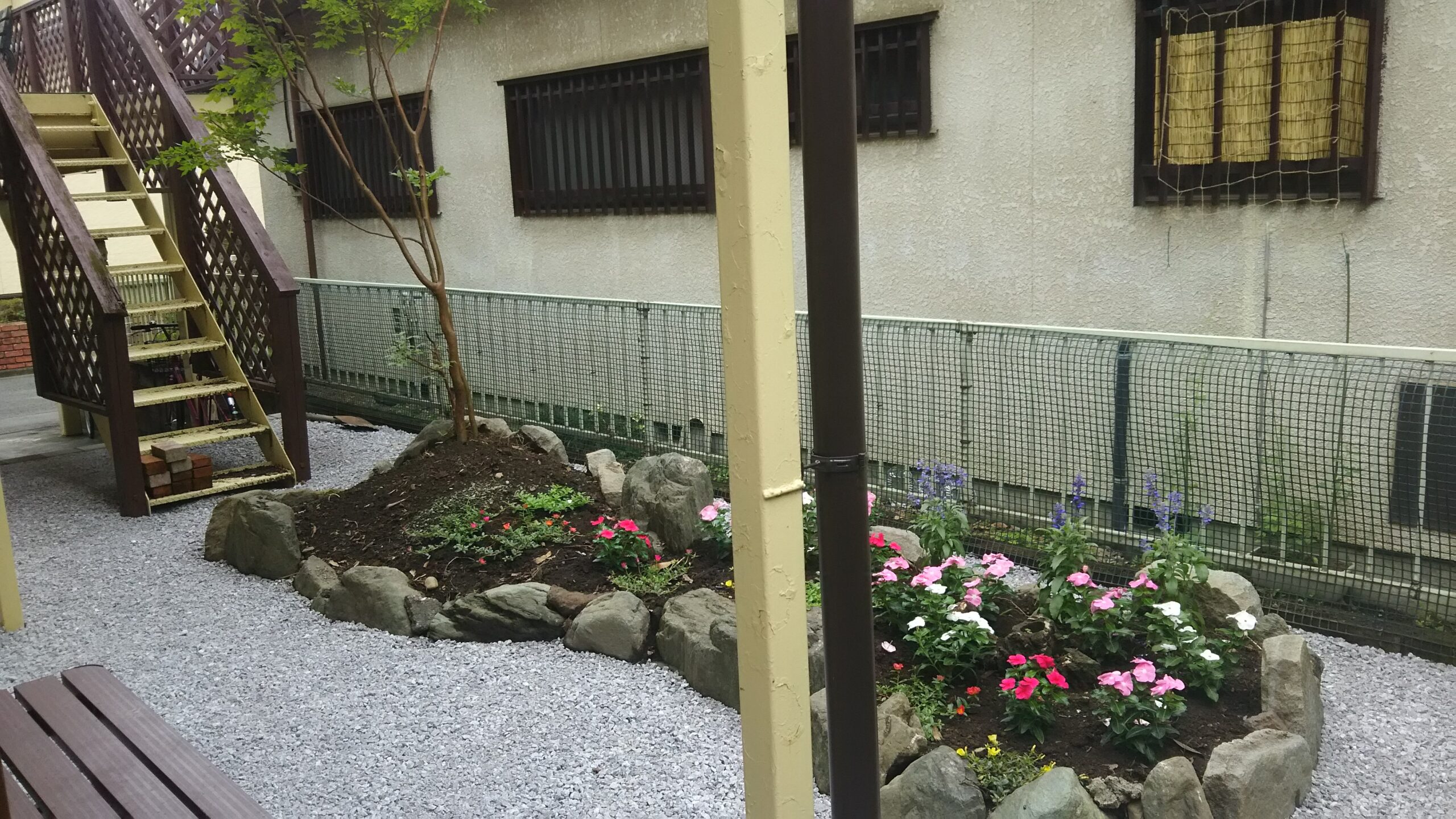 お庭に生い茂った雑草を刈り、整地、敷砂利いたしました。