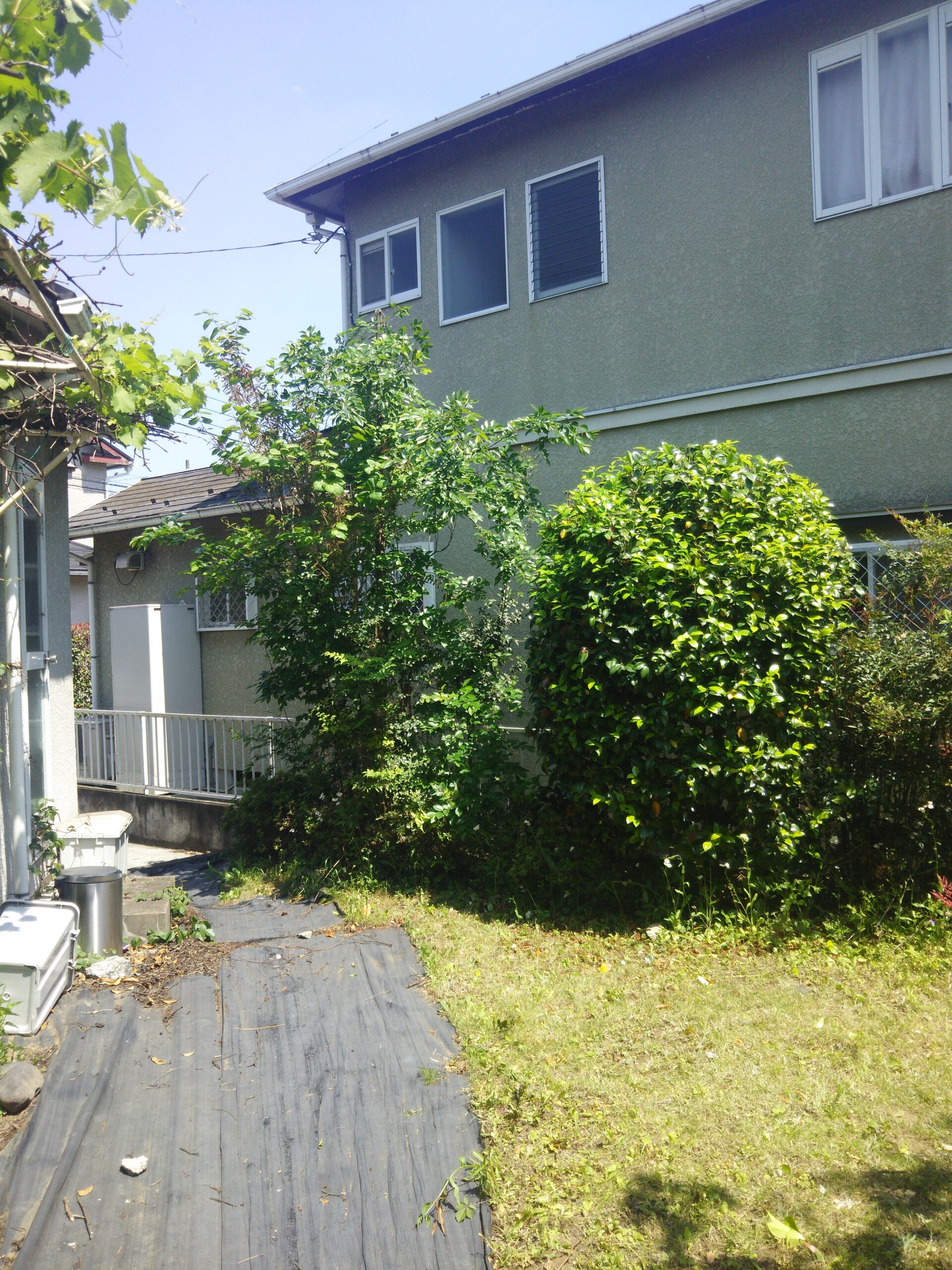 お庭に生い茂った雑草を刈り、整地、敷砂利いたしました。