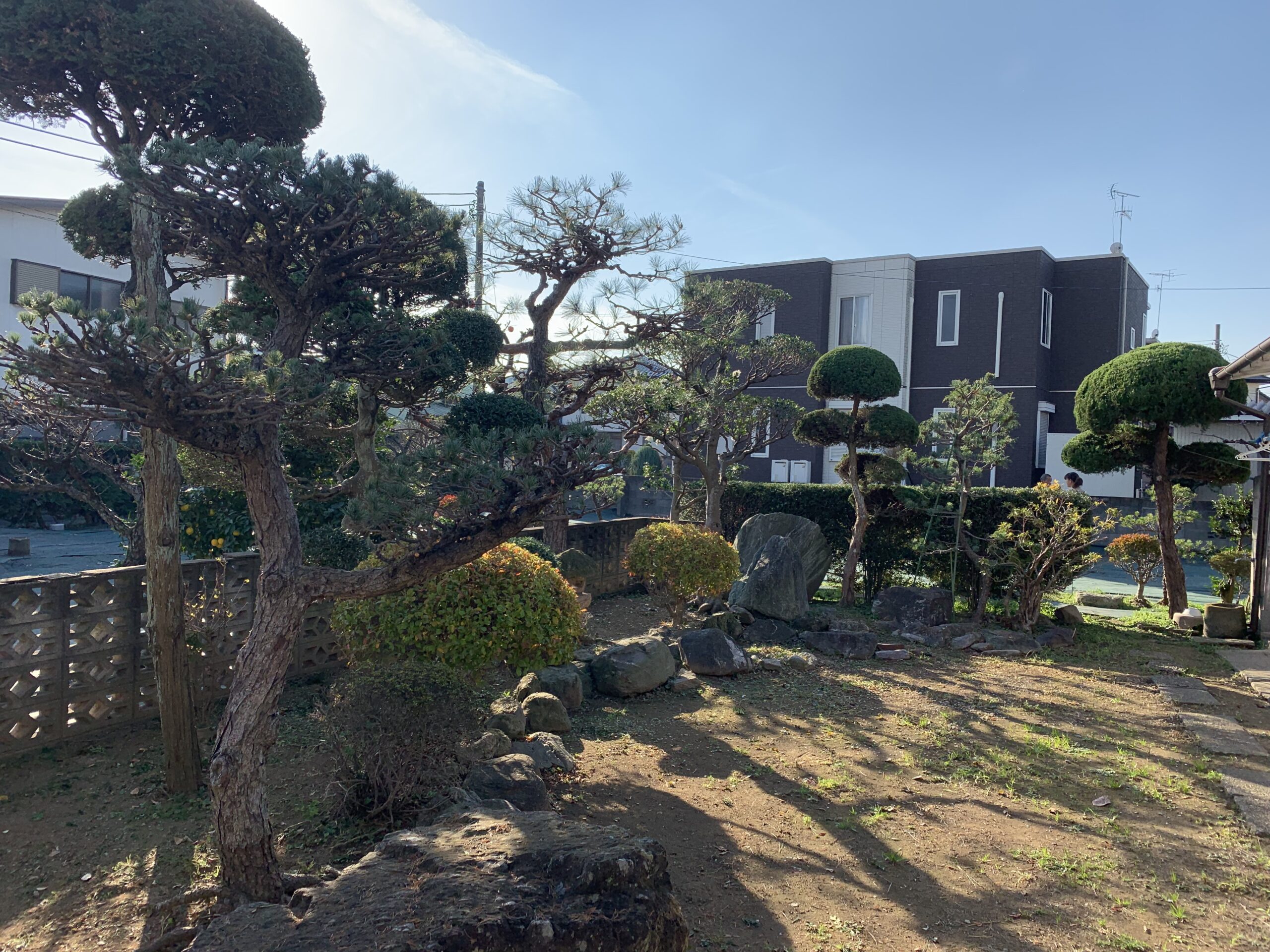 お庭の壁の際に植えていた植木を伐根いたしました。